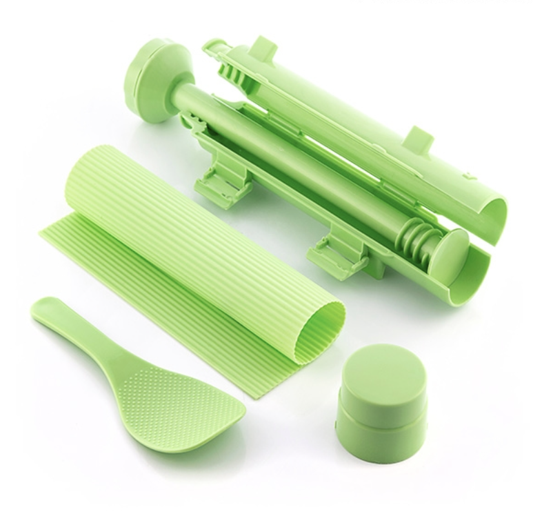Successivamente, inserire al centro gli ingredienti desiderati, compattare il riso e spingerlo fuori dallo stampo. Quindi, arrotolarlo e pressarlo con il tappetino, tagliarlo a fette spesse ed è subito pronto per essere mangiato